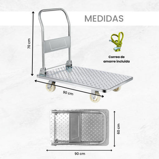Este carro plataforma plegable es la herramienta perfecta para transportar cargas pesadas de forma cómoda, segura y eficiente en mudanzas, eventos o logística diaria.